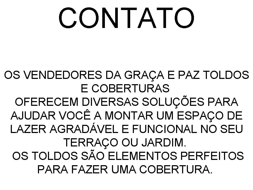GRAÇA E PAZ TOLDOS E COBERTURA LTDA. Rua Artur Tavares da Silva, Nº 116 loja Bairro Realengo Rio de Janeiro - RJ, Cep 21755-160